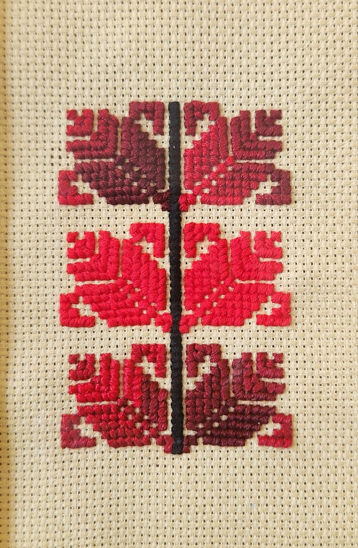 Each piece is stitched with care, carrying generations of history and symbolism. This piece focuses on the qaranful (clove or clove flower) motif — a traditional design once scattered during weddings in celebration and upon martyrs’ funerals in mourning, symbolizing both love and resilience. Blending ancestral patterns with contemporary artistry. Tatreez embroidery embodies the enduring spirit and beauty of Palestine, one stitch at a time and carry the stories of the land.